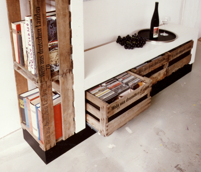In ihrer Funktion ähnlich genutzt, wurden sie an neue Erfordernisse angepasst. Durch Umbauung erlangen einfache Weinkisten einen Möbelstatus. Gleichzeitig geben sie dem Möbel mit ihrer Geschichte ein ungewöhnliches Gesicht.